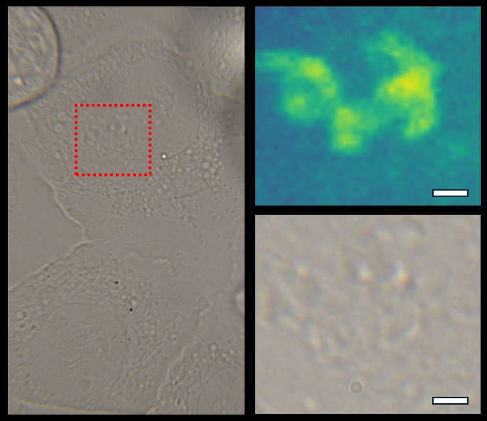 Brillouin microscopy adds a new dimension to established imaging methods by providing mechanical contrast in live, label-free samples. These examples with U2OS cells illustrate how the technique complements brightfield and fluorescence channels to reveal intracellular detail.